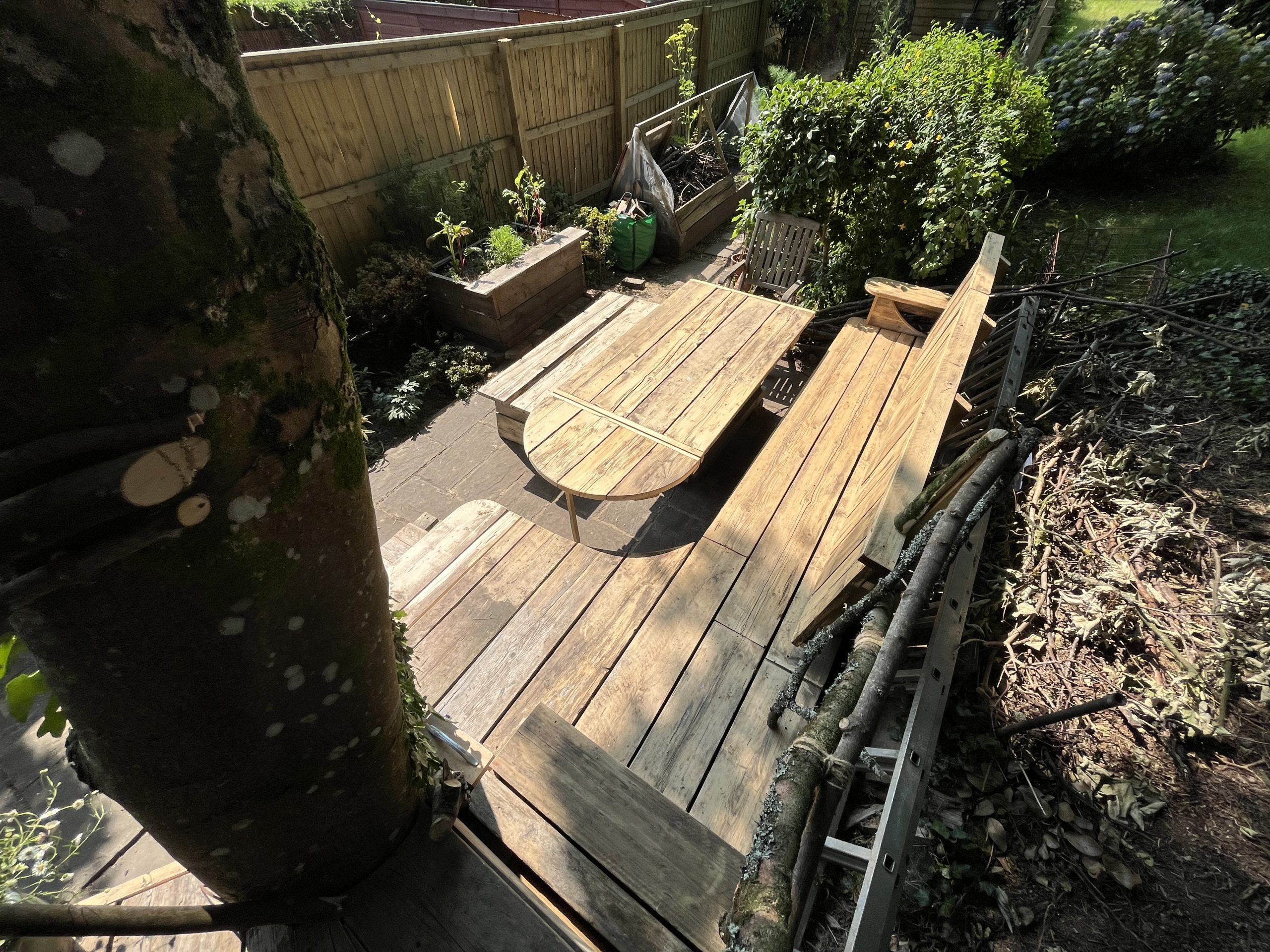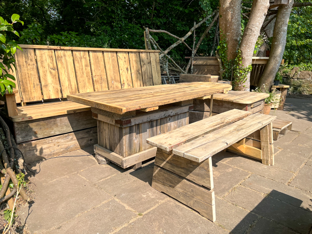 Below are examples of my woodwork. Potting shed, garden room, patio with decking and seating incorporating raised beds, seating from upcycled materials, patio, workshop space.